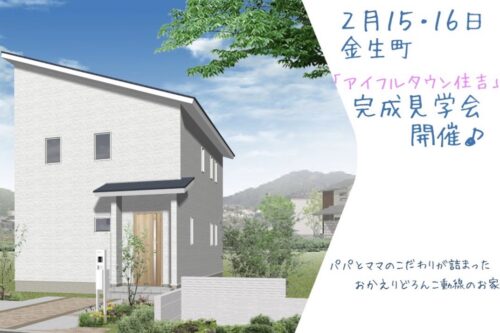 2/15(土)・16(日)開催!「パパとママのこだわりが詰まったおかえりどろんこ動線お家」完成見学会【四国中央市金生町】