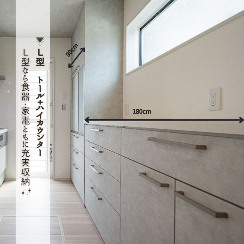 ・L型 トールキャビネット+ハイカウンター