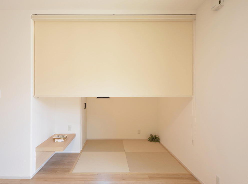 畳コーナーには仕切れるようにロールスクリーンを取付。