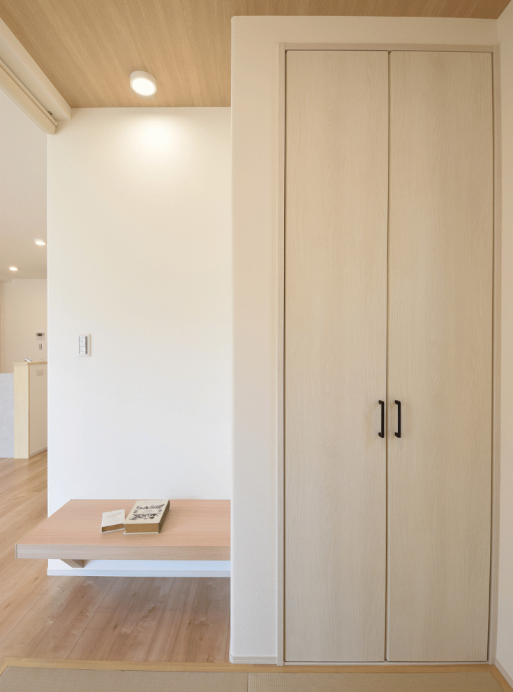 しかし、今回は2階に設けることで、1階の居住空間を圧迫せずに、収納スペースを確保しました。
