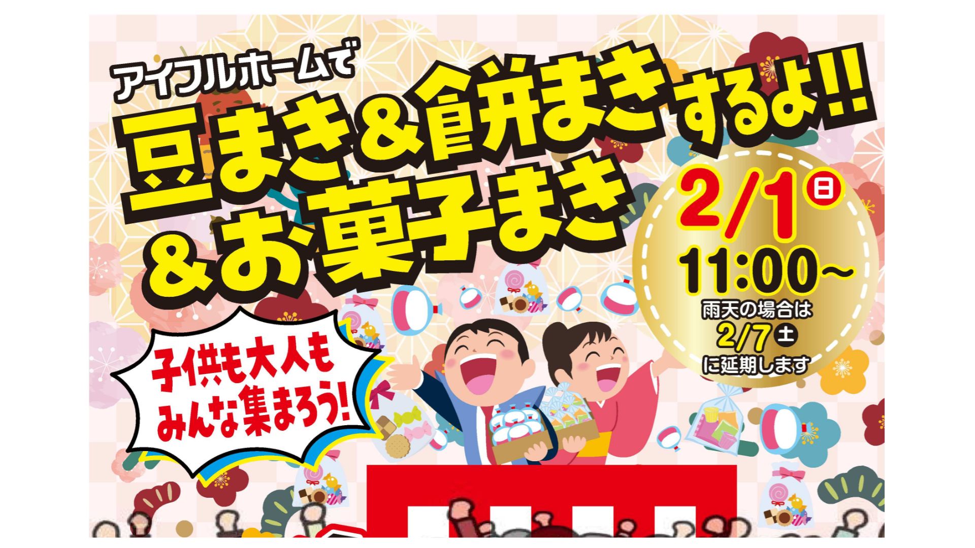 📣2/1にはアイフルホーム川之江店で「餅まき・豆まき・お菓子まき」もするよ✨