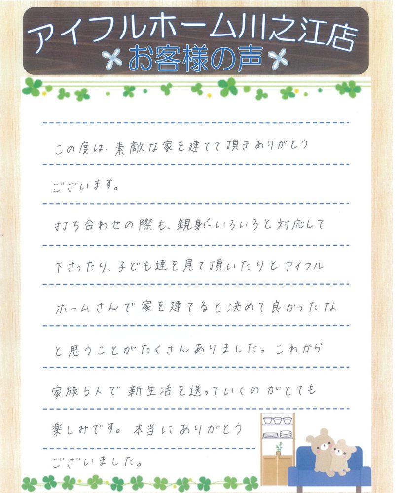ご親切な対応で私たちのマイホームの夢が実現できました。